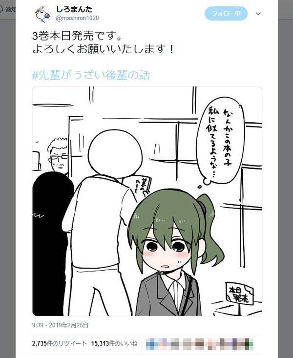 次にくるマンガ大賞18 第1位 しろまんた先生の 先輩がうざい後輩の話 最新刊3巻が本日発売 19年2月25日 エキサイトニュース